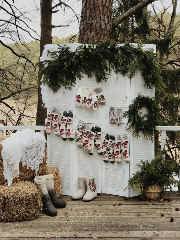 Первое впечатление задаёт настроение. Оформите зону welcome стилизованным «камином» из картонных коробок, зеркалом в резной раме, на котором гости могут оставлять пожелания мелом, или дверным венком из еловых веток, шишек и ягод. Это сразу погрузит в сказку.